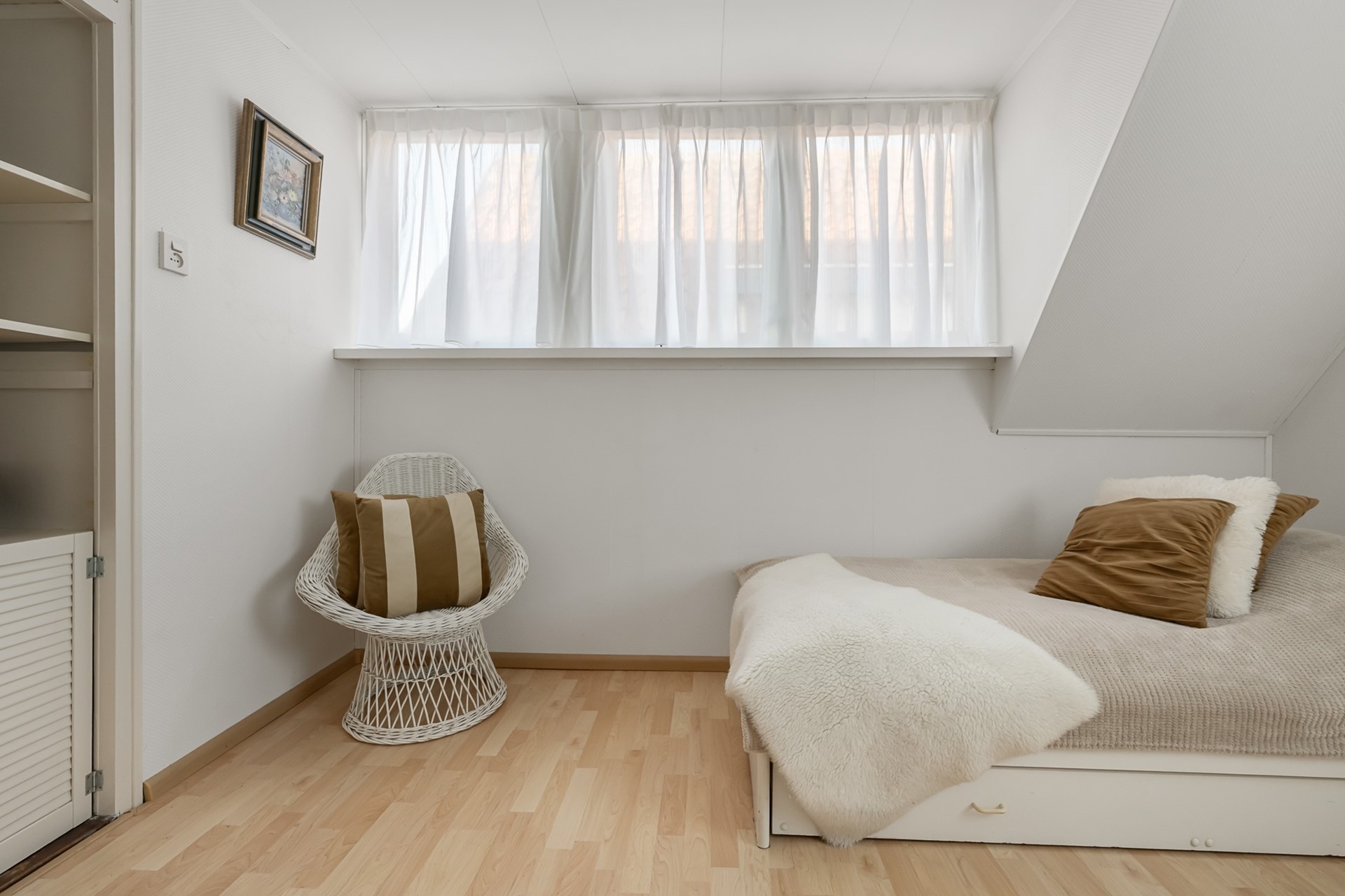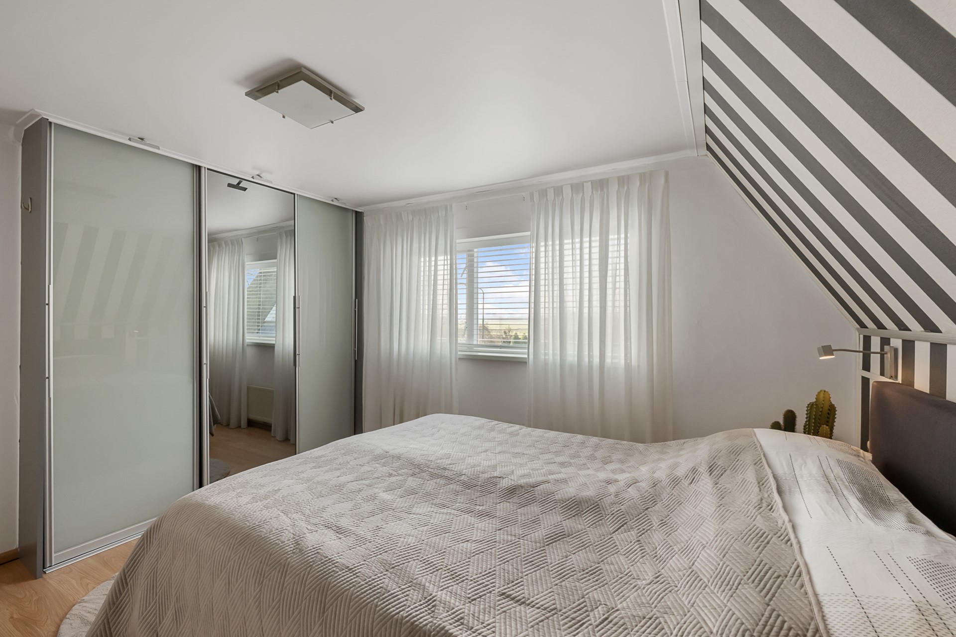 Op de eerste verdieping zijn drie keurig afgewerkte slaapkamers te vinden. De royale hoofdslaapkamer aan de voorzijde is voorzien van inbouwkasten. Aan de achterzijde bevinden zich nog twee slaapkamers, eveneens met inbouwkasten. Via de overloop is de vliering bereikbaar, perfect voor extra opslag.